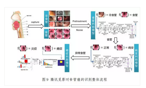 碳云智能由原华大基因 CEO 王俊牵头组建,致力于建立人工智能的内核模型,并对健康风险进行预警、进行精准诊疗和个性化医疗。在产品研发方面,腾讯在 2017 年 8 月推出了自己首个应用在医学领域的 AI 产品腾讯觅影。腾讯觅影把图像识别、深度学习等领先的技术与医学跨界融合,可以辅助医生对食管癌进行筛查,有效提高筛查准确度,促进准确治疗。除了食管癌,腾讯觅影未来也将支持早期肺癌、糖尿病性视网膜病变、乳腺癌等病种的早期筛查。