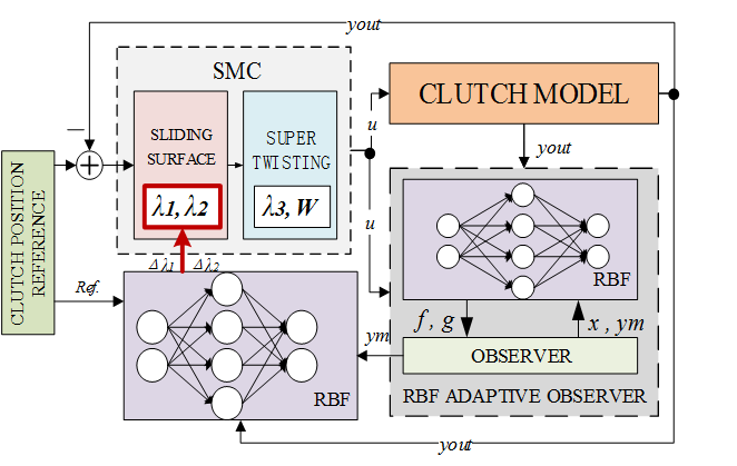Improved Sliding-Mode On-line Adaptive Position Control for AMT Clutch Systems Based on Neural Networks(《基于神经网络优化的AMT离合器系统滑模在线自适应位置控制》)论文第一作者邹洁提出了一种基于神经网络优化的二阶滑模位置控制器。控制器参数通过在线自适应调整获得,以控制离合器系统在车辆起步阶段对位置轨迹有更快更准的跟踪表现,该方法有别于传统依赖手动离线调节控制器参数并将其固化,在线自适应调整的参数不仅显著提高了控制器对被控对象变化的适应性及对外部干扰等不确定因素的鲁棒性,同时大幅降低了对工程师经验的依赖及反复试验的时间成本,从而全面提升了控制器的泛华能力。
