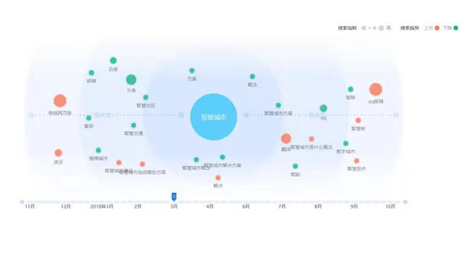 根据搜索热词,一定程度上可以看出公众更加关注智慧城市的哪些方面。下面这张热词图稍显凌乱,从概念到解决方案这种更加具体的领域,都显示出较强关注度。这也许反映出,对于新一线城市来说,智慧城市依然是个值得深耕的领域,相关建设处于起步阶段,概念的普及依然有待加强。