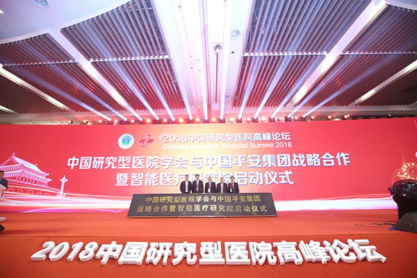 11月10日,“2018中国研究型医院高峰论坛”在天津召开。高峰论坛会上,举办了中国研究型医院学会平安集团战略合作暨智能医疗研究院启动仪式,双方将遵循“互惠互利、共同发展,出成果出人才、创新业惠民生”的宗旨,在生物医药医疗领域与人工智能技术应用方面开展全方位深度合作。