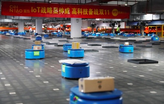 在圆通杭州转运中心,就有一个与菜鸟联合打造的超级机器人分拨中心。2000平方米的场地内,350台机器人昼夜作业,每天可分拣超50万只包裹,机器人们三天的行驶里程足以绕地球一圈。