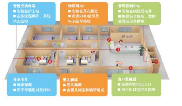 婴儿佩戴对人体无害的RFID电子标签,信号接受装置能随时接受到婴儿电子标签所发出无线射频信号,并据此信号判断标签所处的状态,从而对婴儿所在位置进行实时监控和追踪,系统可以对企图盗窃婴儿行为及时报警提示,并结合门控更有效防止盗窃婴儿事件的发生。