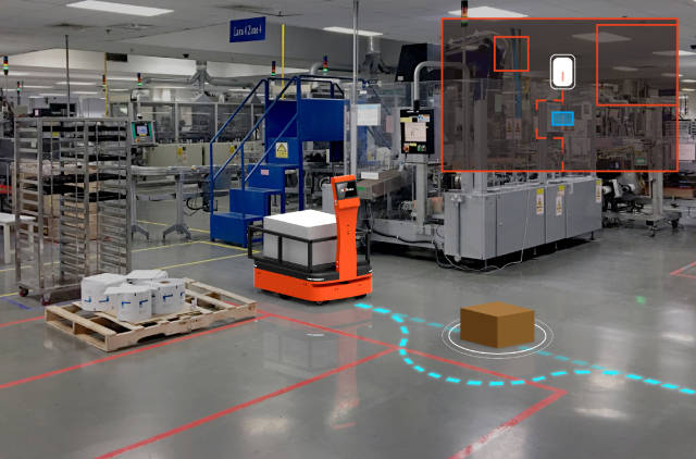 稳定性方面,采用包含UWB在内的融合定位方案,二次定位精度可达±5mm,助力机器人在人机协同的复杂环境中稳定运行,同时精准地完成生产物料的转运与投递任务。