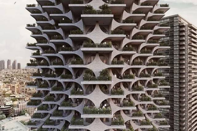 Tel Aviv Arcades(特拉维夫拱廊):这栋住宅项目的灵感来源于“特拉维夫白城”。建筑高116米,共18层,包含17650平方米的住宅空间,由来自中国和维也纳的两位设计师共同设计完成,计划于2019年开始动工。