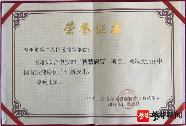 扬子晚报网12月1日讯 (通讯员 孙镇江 记者 张斌)11月30日,在海南省海口市召开的中国数字健康医疗大会上传来好消息——常州市第二人民医院申报的“智慧病历”项目,获得“2019中国智慧健康医疗创新成果”奖。
