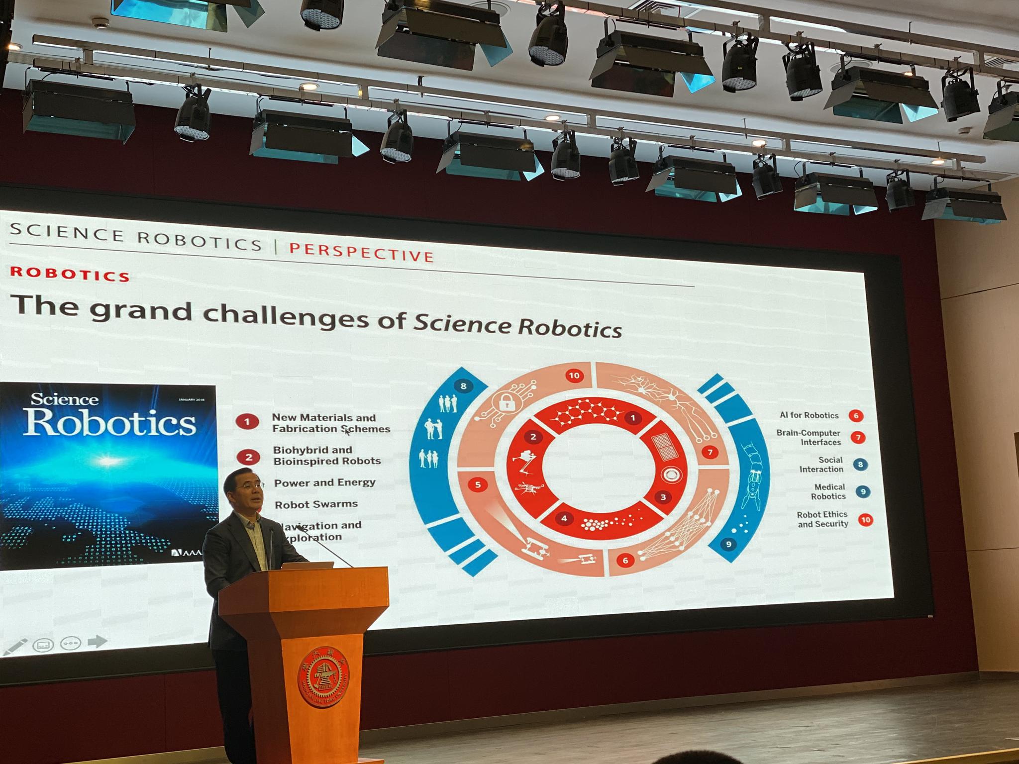 除了这一点外,杨广中还提到了《科学机器人》杂志总结的机器人十大挑战,他认为也是未来机器人发展需要解决的问题。这十大挑战分别是:新材料和制造方案、仿生机器人和生物混合机器人、能量和能源、机器人集群式处理任务、航行与探索、机器人技术本身、脑机接口、社会互动、医疗机器人、机器人伦理与安全。