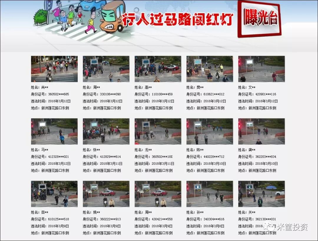 。涉事行人都是在闯红灯时,被监控抓拍下来,再通过人脸智能识别,识别出涉事行人的身份信息,予以曝光。就是这样:
