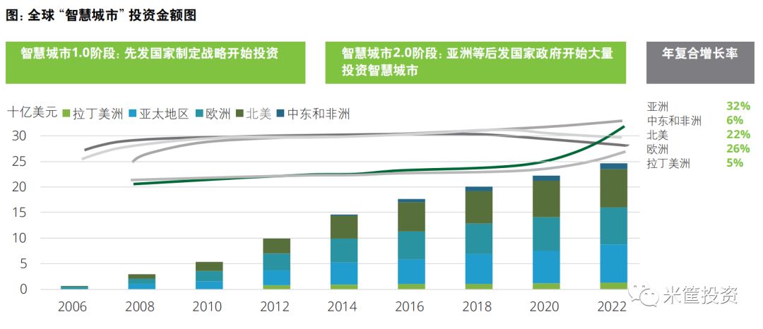 在这股新技术浪潮中,全球对智慧城市的投资额也逐渐攀升,预计2018年,全球总投资能达到200亿美元。尤其是亚洲地区,投资额年增长32%,无人能及。