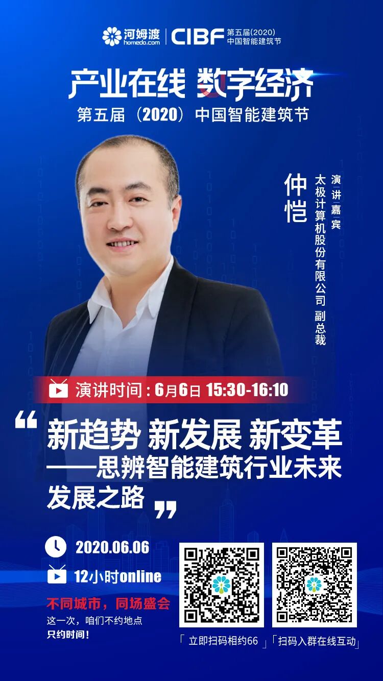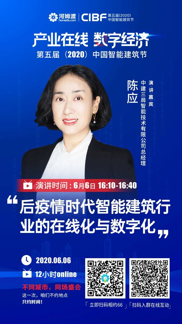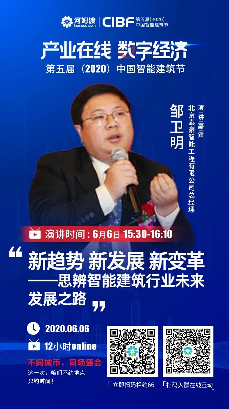 ?  行业大咖演讲《后疫情时代智能建筑行业的在线化与数字化》陈应 中建三局智能技术有限公司总经理《智慧建造的未来-空间智能化》刘淼 联想集团中国DCG服务部总经理?  经济学家演讲《新经济,新基建,智慧产业新机遇》