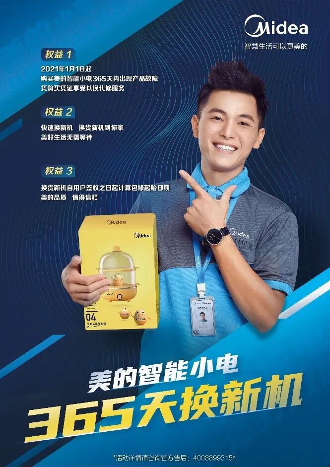 全面以换代修直面领袖担当挑战行业痛点当然,用户只为体验买单,市场的投票权从来都只掌握在用户手里,美的的另一个果敢之处则在于用户体验上的创新美的智能小电率行业之先推出了“以换代修”政策,自2021年1月1日起,消费者在购买美的小家电后,不论是线上平台,还是线下渠道,只要出现产品问题都可以通过购买渠道或拨打4008899315客服热线享受365天以换代修服务。