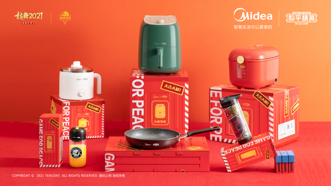 近期,美的联合腾讯旗下国民级战术竞技手游《和平精英》,推出了家电行业首个面向游戏圈层的联名套系小家电,系列产品不仅包含了完美复刻游戏内“吃鸡神器”的平底锅,并且采用了游戏内标志性的空投箱外观设计和“独占+限量”等游戏圈内的特色发售方式。