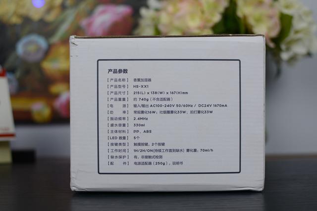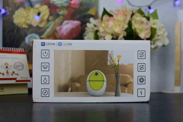 外包装加湿器采用的风格属于家居风,整个外包装就是一个实际的家居使用环境和风格。而包装上也为用户展示了它的一些功能,虽然是采用的图标模式,但是很浅显易懂: