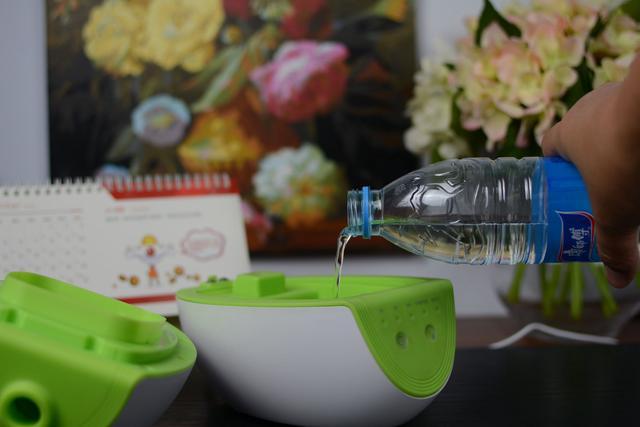 下面我就要加水了哦!使用的是矿泉水,这款加湿器也支持加入精油,但是自己不太喜欢精油的味道,所以在我的屋子里测试时,没有加入精油,而是直接的加入水: