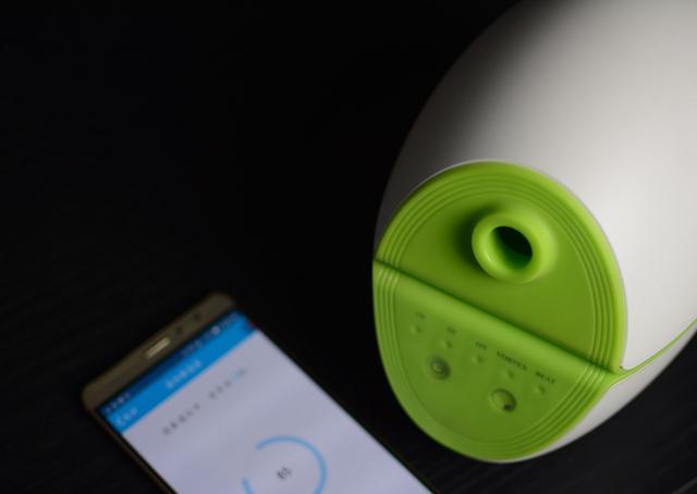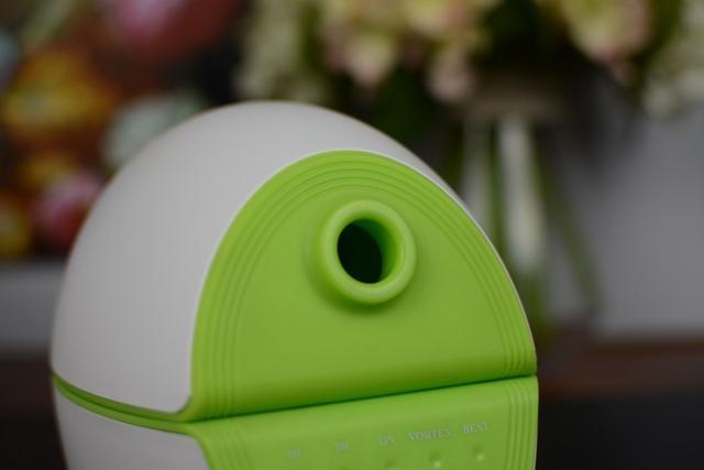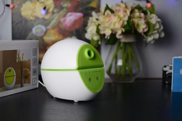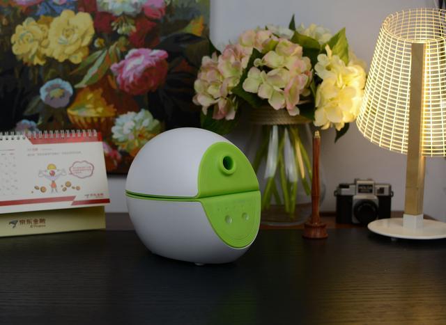 拿出产品主机,清新的绿色和白色结合,彰显着自然清新的味道。整个外观更像是一个小巨蛋,只是有了一个豁口。摆放到桌面看上去很协调,和背景几乎成为了一体,看起来不错。如果不想摆放到桌面,也可以随意的摆放到理想的位置。因为它的外形并不夸张,可以很好的融入到家居或者办公环境当中: