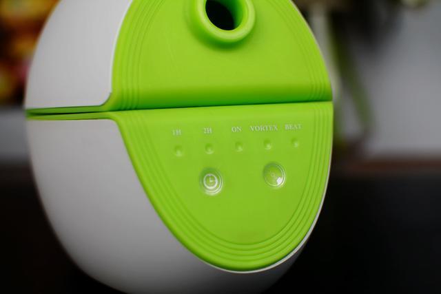 操作按键实际上只有两个,一个是调节时间控制,另外一个为调节加湿模式。时间可以设置1H、2H和持续加湿,模式可以分为正常的加湿效果还有烟圈模式。时间和模式都可以根据自己的需要进行随意的调节:
