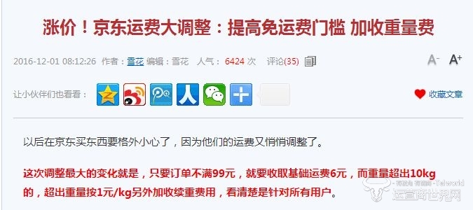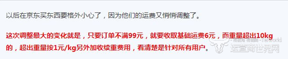 尤其是京东自建物流已经拖累京东集团财报多年,也是京东长期亏损的根本原因。随着用户粘性和口碑的不断攀升,京东也悄悄的从免运费到满99元免运费,再到超重加运费慢慢过渡。