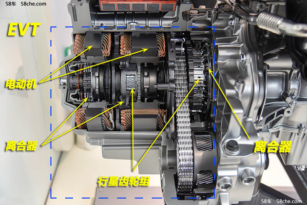 能够支持两种电子无级变速(EVT)模式和一个固定档位模式,通过不同模式的切换,能够保证车辆在各种路况下的燃油经济性。